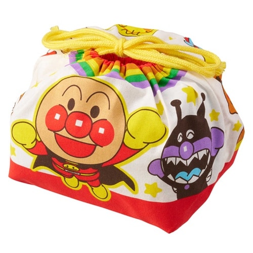 お子様でも出し入れが簡単な巾着タイプのお弁当袋です。 表面と裏面、底面にもアンパンマンと仲間たちがデザインされた元気いっぱいのデザインです。 裏面に名前を書き込むスペース付きです。 |