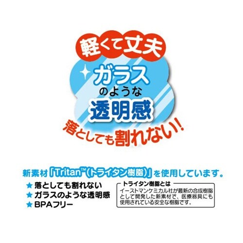 落としても割れないアンパンマンのクリアコップです。 ガラスのような透明感、軽くて丈夫な新素材トライタン樹脂を使用しています。 小さな手でもかたむかずにまっすぐ持てるワイドな持ち手です。 |