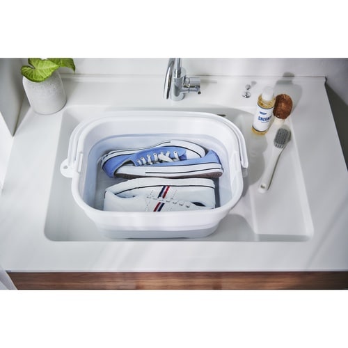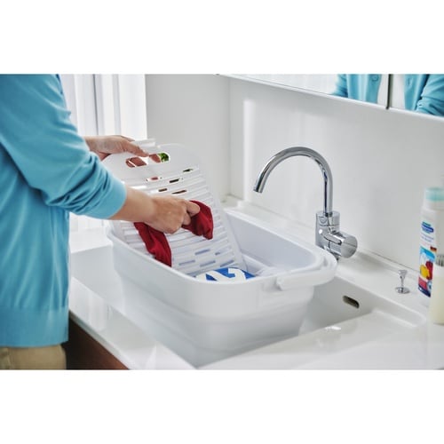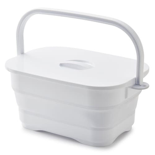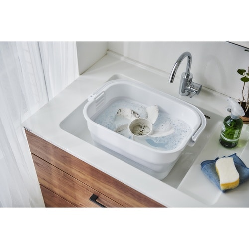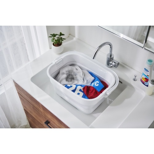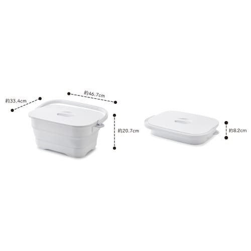 折りたたんでスリムに収納できるバケツ16Lです。 高さ調節可能な落し蓋で、つけ置き洗濯物の浮き上がりをガードします。 蓋付きで見せたくない物のつけ置きも安心です。 水抜きは底の栓からラクに行えます。 |
