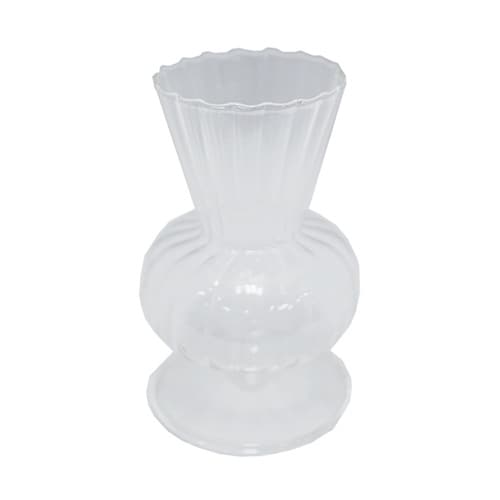 エレガントな印象のフラワーベースです。 クリアなガラスなのでお部屋の雰囲気に溶けこみます。 小さめのサイズ感で手軽にお花のある生活を楽しめます。 |