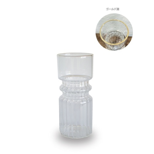 花を美しく見せるフラワーベース Sサイズです。 透明ガラスで清潔感のあるデザインでお部屋に馴染みやすいです。 中央のくびれで花束を美しくまとめやすいです。 ゴールドの淵がアクセントになります。 |