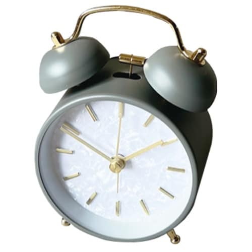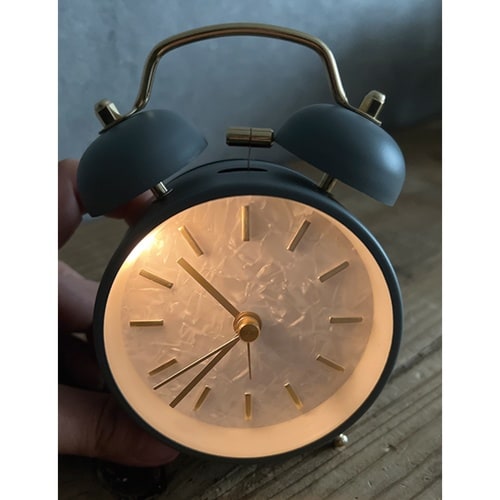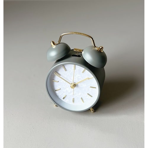 くすみカラーがかわいい置き時計です。 アラーム機能付きです。 クラシカルなツインベルデザインが、お部屋に上品さを演出します。 ラグジュアリー感漂うシェル風デザインの文字盤とゴールドカラーの秒針です。 |