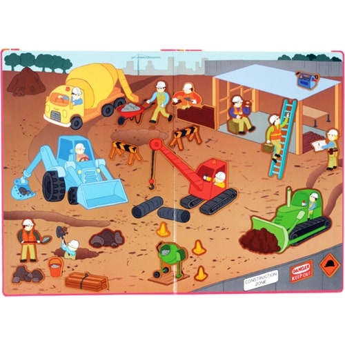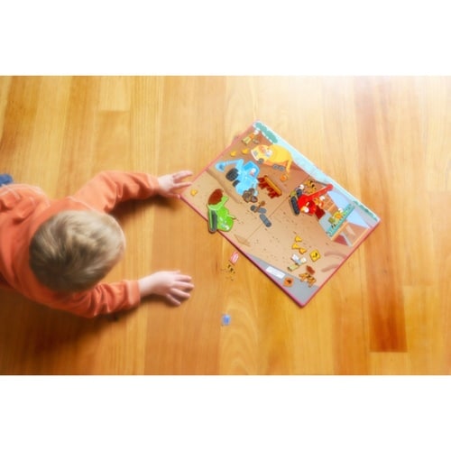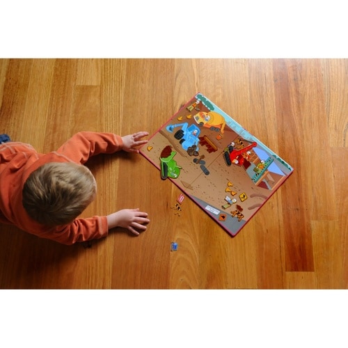 工事現場で働く人や乗り物のイラストのマグネットを、繰り返し貼って遊べるマグネットブックです。 お話を作ったり、ごっこ遊びをすることで、お子さまの想像力や感受性が高まります。 |