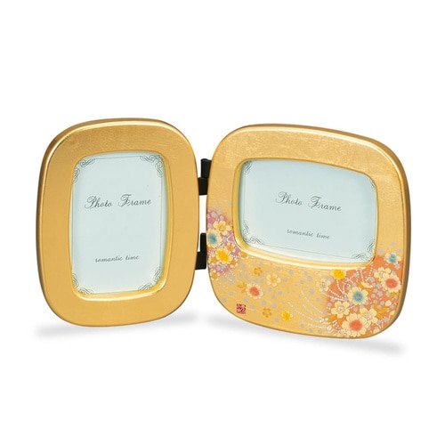 フォトフレーム 小判ダブルピクチャー 箔工芸 山中塗 花丸