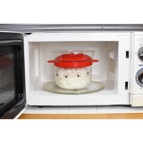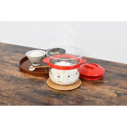 電子レンジ用炊飯器 1から2合 ぎゅっとおにぎりさん ガラスのレンジご飯釜 レッド