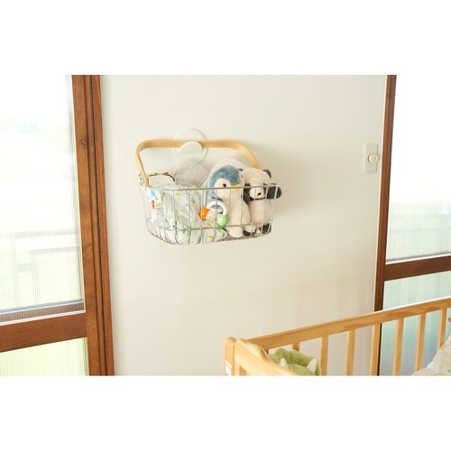 いつでも気軽に持ち運べるバスケットSサイズです。 使ったあとは別売りのサークルフックに引っかけて壁に収納可能です。 床から浮かせてお掃除も楽々です。 |
