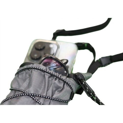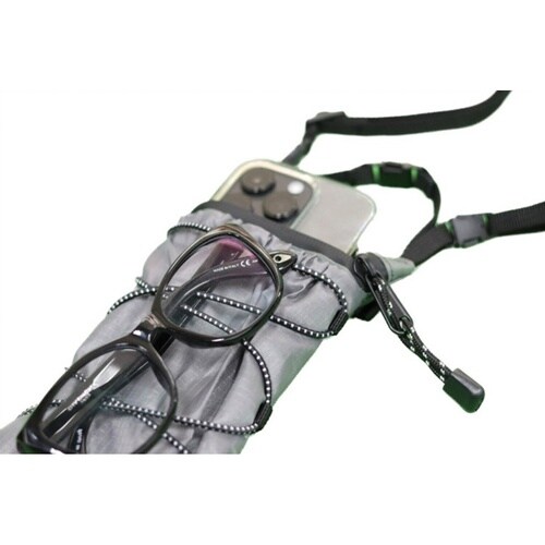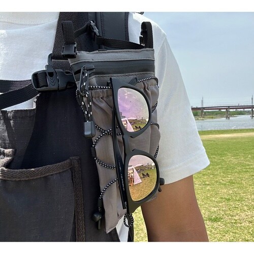 スマホとアイウェアを一緒に収納できるバッグです。 取り外し・長さ調整可能なショルダーストラップ付きです。 軽くて水に強いリップストップナイロンを使用しています。 |