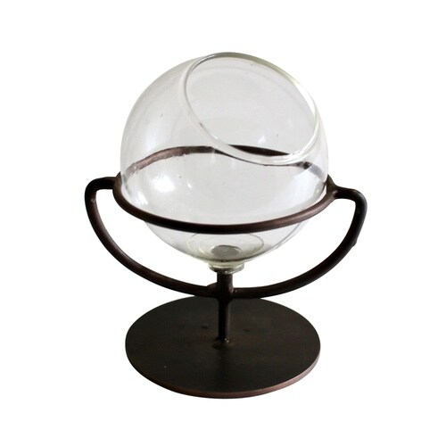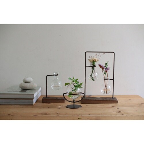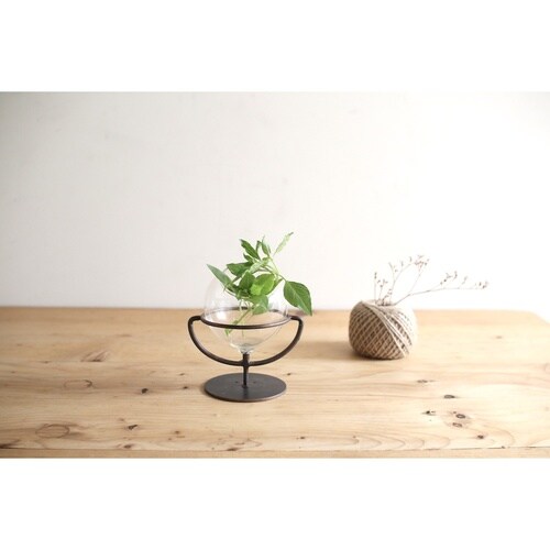 アイアン×ガラスの置くだけでおしゃれなフラワーベースです。 実験のフラスコのようにガラスが宙に浮いたユニークなデザインになっています。 ドライフラワーやグリーン、一輪挿しに最適です。 |