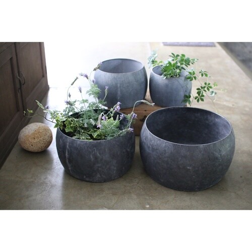 ナチュラルな雰囲気が魅力のブリキプランター ラウンドXLサイズです。 軽量ながら耐久性が強く、エイジングも楽しめます。 ブリキの素朴な風合いがグリーンを美しく引き立てます。 |