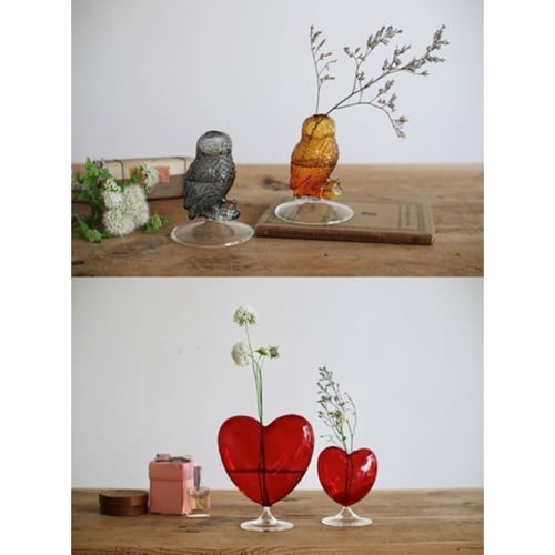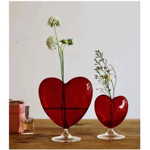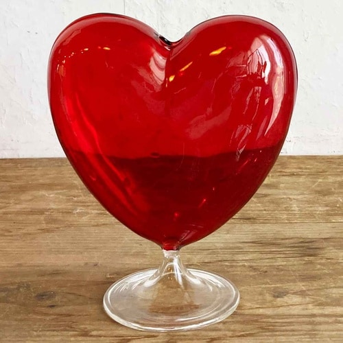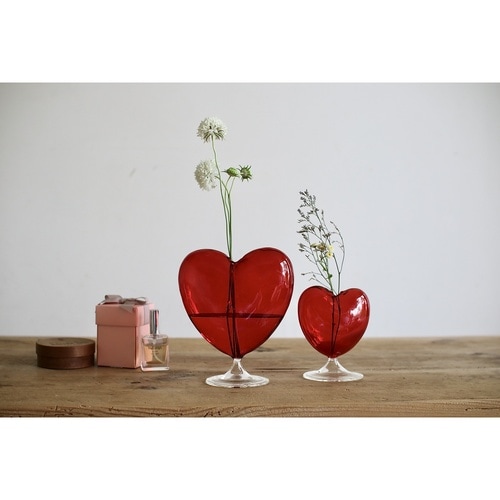 愛らしいハートのフラワーベース Lサイズです。 鮮やかなレッドカラーとガラスの艶々とした質感が魅力です。 可愛いモチーフながらも上品な雰囲気をまとっています。 |