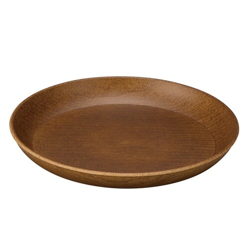 温かみのある木の風合いが感じられる木目調のラウンドプレートLサイズです。 樹脂製なので、落としても割れにくく、軽量で扱いやすいです。 |