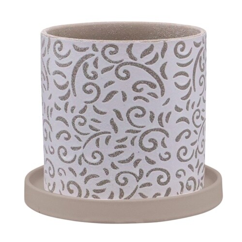植木鉢 グリッグポット 受け皿付き 唐草模様×ベージュ