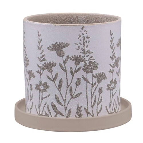 植木鉢 グリッグポット 受け皿付き 花模様×ベージュ
