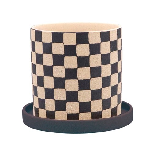 インテリアに馴染むシンプルなデザインです。 ソーサー付きで、底穴も空いているのでお部屋に置いたまま水やりが可能です。 表面には撥水加工のプリントが施されています。 |