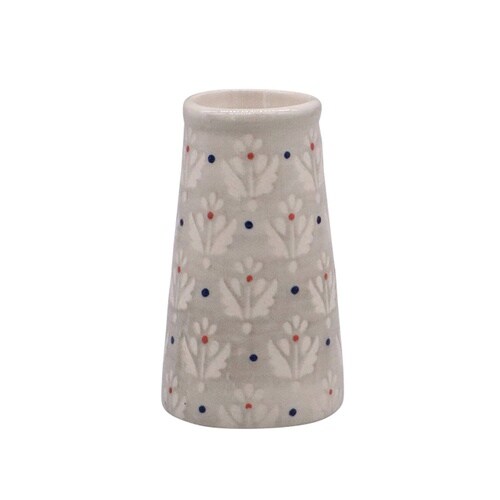 小さなセラミック製のフラワーベースです。 東欧風の柄がお部屋の雰囲気を明るくします。 職人が手作業で仕上げているので1つ1つ異なる表情が魅力的です。 気軽に飾れる小ぶりなサイズです。 |