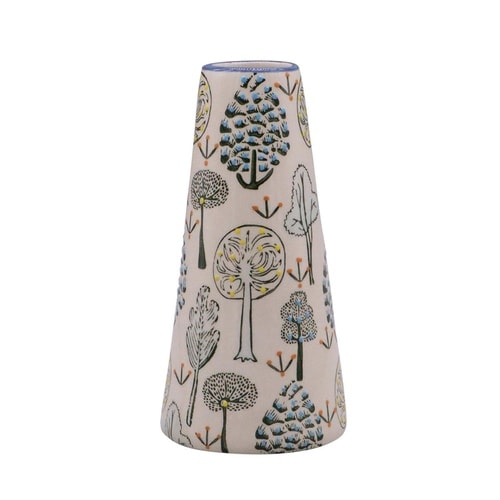 セラミック製のフラワーベースです。 レトロポップな柄がお部屋の雰囲気を明るくします。 職人が手作業で仕上げているので1つ1つ異なる表情が魅力的です。 |