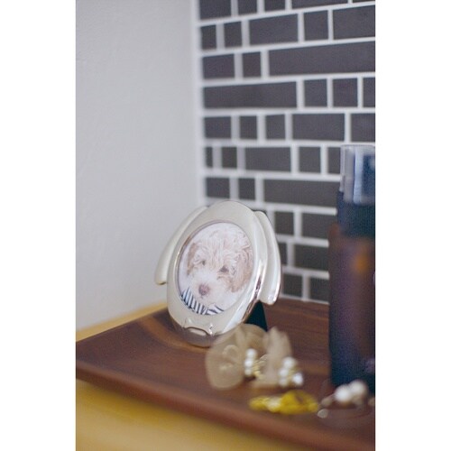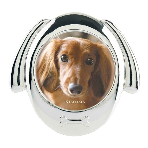 高級感のある質感 愛らしい犬のデザインのフォトフレーム いつでも側に飾っておける小さめサイズ 窓サイズは直径5.7cm |