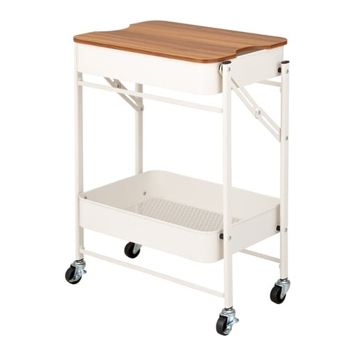 キッチンワゴン 折り畳める 2段 ワゴン Amely 天板 キャスター付き ホワイト