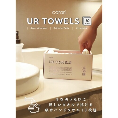 手を洗うたびに新しいタオルで拭ける、吸水ハンドタオル10枚組です。 抜群の吸水力のマイクロファイバー素材で、手の平の水分を瞬時に吸水します。 |