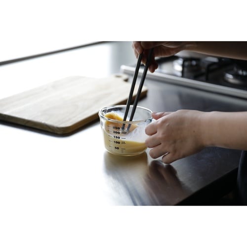 シンプルなメモリで計りやすい耐熱ガラス製の計量カップです。 電子レンジ・オーブンOKで、時短調理に大活躍します。 菜箸や小さな泡だて器などで混ぜやすい広口設計です。 |