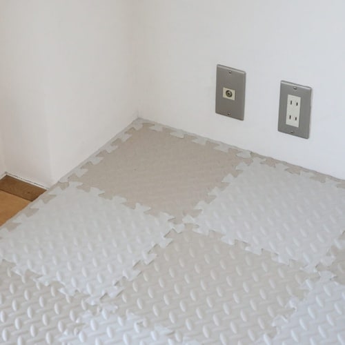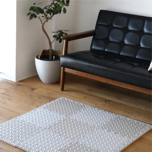 部屋の隅まで敷き詰められる、フチ付きのジョイントマットです。 まるでカーペットのようにすっきり美しく仕上がります。 表面は凸凹加工で足裏がベタつかず、裏面は滑り止め付きで動きにくい仕様です。 |