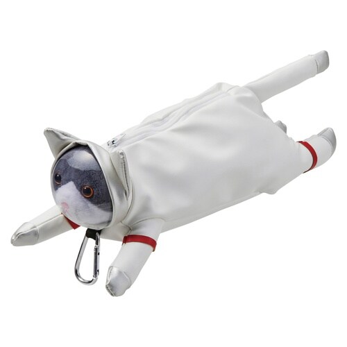 宇宙服を着た猫のペンケースです。 開閉しやすいファスナー式で中身を出し入れしやすいです。 定規などの長さがある文具も収納できます。 カラビナ付きなので持ち運びに便利です。 |