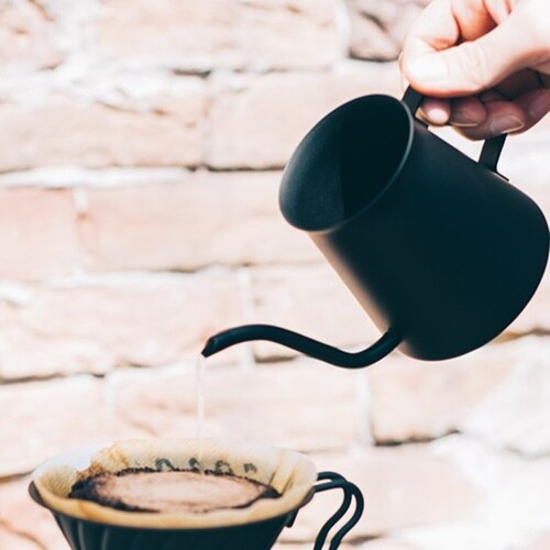沸かしたお湯を注いで、卓上でドリップコーヒーが楽しめるケトルです。 細口ノズルにより、お湯の量を繊細にコントロールすることができます。 |