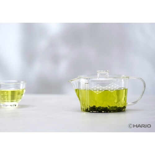 ガラスのような透明感と、BPAフリー・高い耐熱性・高い透明性・耐衝撃性を兼ね備えた安心素材のトライタン製の急須です。 側面に麻の葉模様が付いています。 |