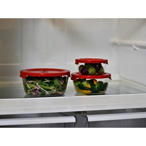 色と匂いがつきにくい耐熱ガラス製丸型コンテナ3個入りです。 フタをしたまま電子レンジ使用可能です。 フタを外せばオーブン使用可能です。 食器として食卓へ出せます。 スタッキング可能です。 |