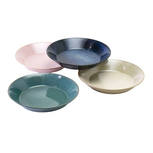 パスタ皿の4枚セットです。グリーン、ネイビー、アイボリー、ピンク各1点の計4点セットです。 どんな料理にも合わせやすく、テーブルを素敵にコーディネートします。 |
