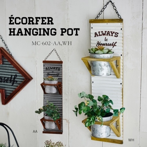 アンティーク風のお庭を演出する「ハンキングポット」です。 ハンギングアレンジを手軽に楽しる植木鉢2個付きです。 「ALWAYS be yourself」ロゴ入りです。 |