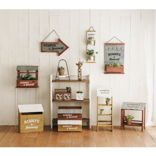 アンティーク風のお庭を演出する「スタッキングボックス」です。 スタッキング可能で整理整頓にも便利です。 「ALWAYS be yourself」ロゴ入りです。 |
