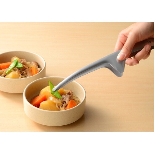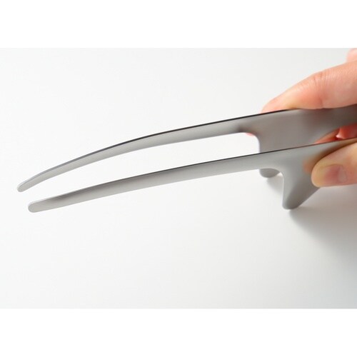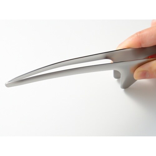 先端部は、お皿に当たらないちょうどいい高さに設計されています。 テーブルにサッと置けるので、トングスタンドなどを用意する必要がなくスペースも取りません。 |