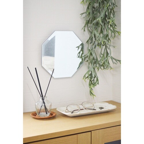 スタンドミラー モーメント 木製スタンド付き 掛け置き兼用 八角形