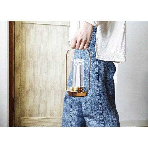 ガラスと真鍮風のベースを組み合わせた、レトロモダンな雰囲気のLEDランタンです。 点灯すると柔らかな光がガラスに透けて広がります。 USB充電式なので持ち運びや停電時にも便利です。 |
