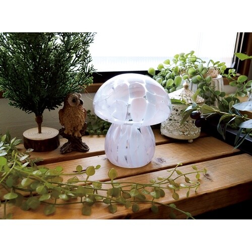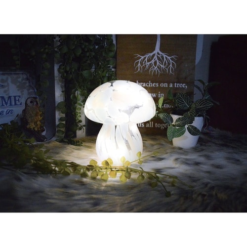 暗闇で幻想的に光る、ガラス製のキノコ型ライトです。 ころんとしたカタチが可愛らしく、インテリアとして存在感を放ちます。 電池式なのでコンセントの位置を気にせず使えます。 |