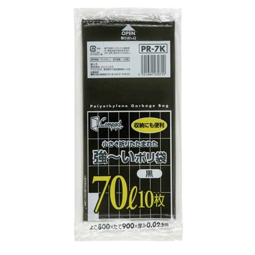 ポリ袋 70L 10枚入り 黒 コンパクト ※8個以上から注文可能(販売価格は1個単位の価格)