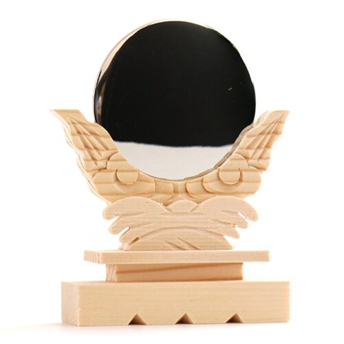 中型の三社にちょうど良いサイズの神鏡2.0寸です。 台座は白木に細微の彫りを施した立体的なデザインです。 造りの良い神鏡をお探しの方にお勧めです。 |