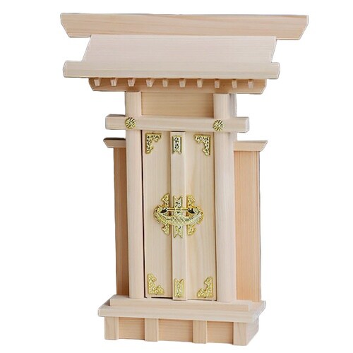 基本形の大神宮のため地域を選らばず安心して設置できます。 古からの伝統形「袖付き」と呼ばれる一社宮の造りです。 神棚の作りは細部までしっかりと、質の高い檜を使用しています。 |