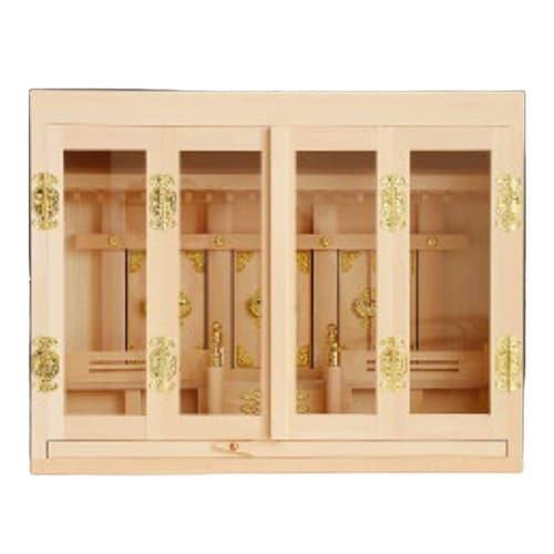 祀り易く、しっかりとした造りの箱宮16号です。 箱宮は社を箱型のケースに入れた神棚の種類です。 主に北陸から北海道にかけて一般的にお祀りされています。 |