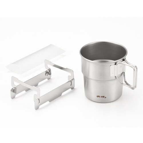 新潟県燕市の高度な金属加工技術で作られたステンレス製マグカップです。 コーヒーのドリップバッグがお湯に浸からない位置で安定してセットできる、組立式のホルダー付きです。 |