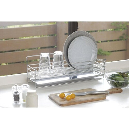 奥のスペースに置けるスリムタイプの水切りラックです。 奥行は15.5cmとコンパクトサイズなので、限られたスペースを有効活用できます。 2人分の食器類が収納可能です。 |