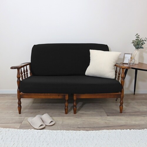ソファカバー 2人掛け用 セパレートタイプ 撥水加工 2枚組 ブラック