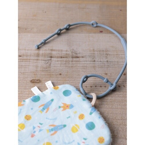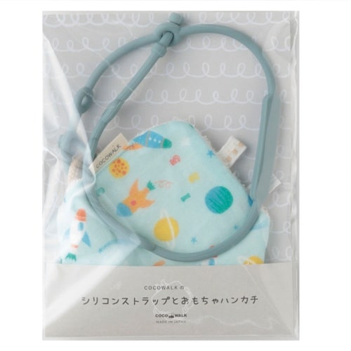 ベビー ニギニギハンカチ シリコンストラップ付き おもちゃ 落下防止 日本製 ベビーカー モチーフ スペースワールド