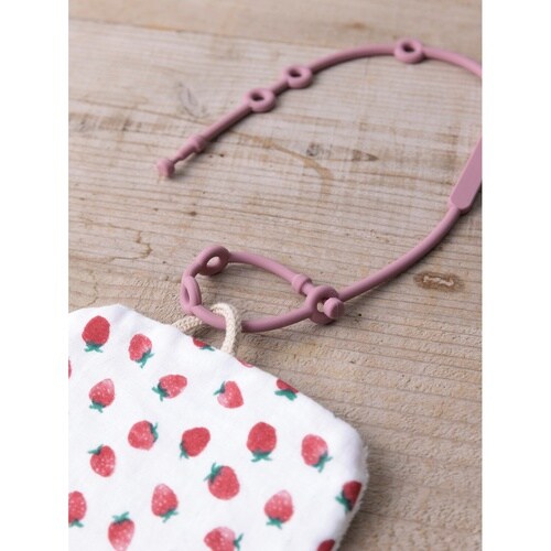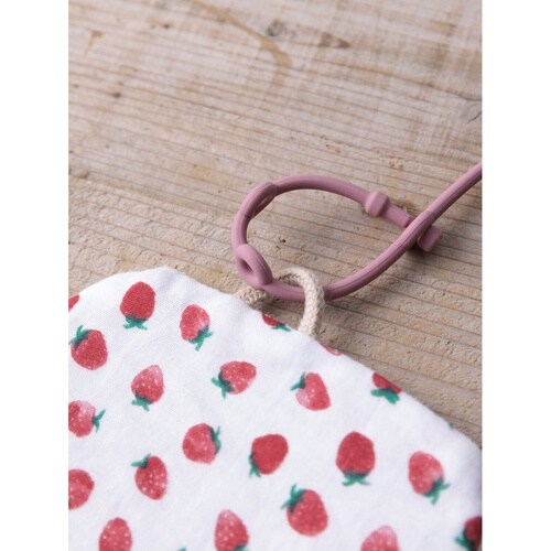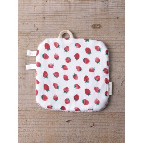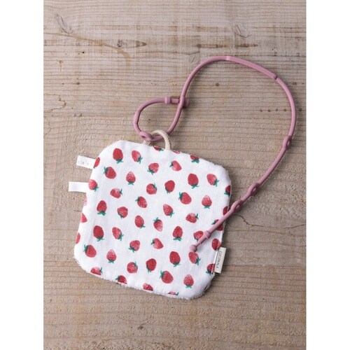 ベビー ニギニギハンカチ シリコンストラップ付き おもちゃ 落下防止 日本製 ベビーカー フルーツ イチゴ