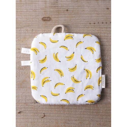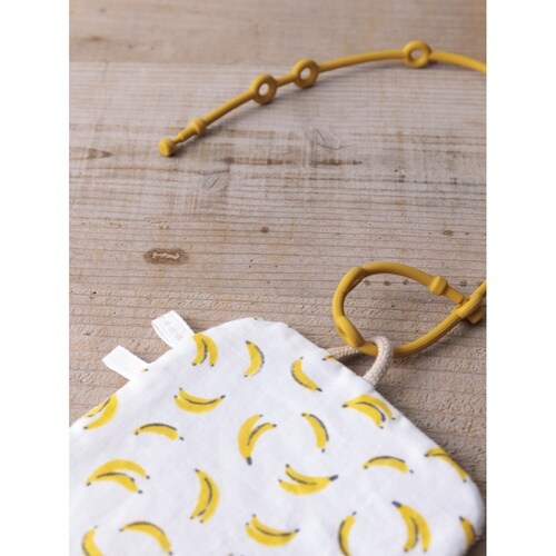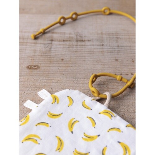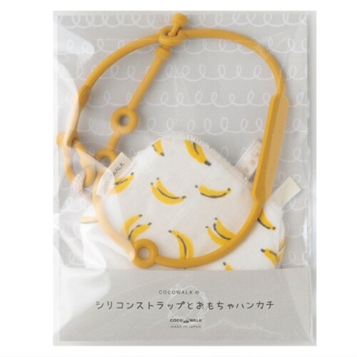 ベビー ニギニギハンカチ シリコンストラップ付き おもちゃ 落下防止 日本製 ベビーカー フルーツ バナナ