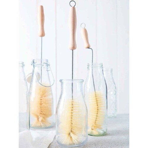 水筒やピッチャーなどを洗う際に活躍するボトルブラシです。 手の届かない場所もしっかり洗えます。 温かみのある天然木の取っ手には、フックに掛けられるように穴があります。 |