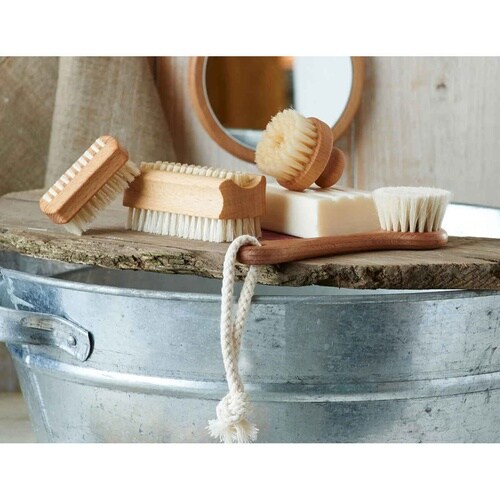 天然木と山羊毛で作られたフェイスブラシです。 毛穴に入った汚れを優しく取り除いてくれます。 ループ状の紐が付いており、フックに引っ掛けて収納ができます。 |