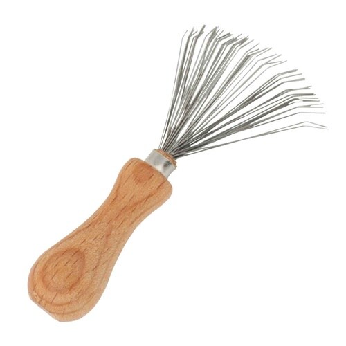 熊手型のピンでブラシをキレイにお手入れできるブラシクリーナーです。 コンパクトでありながら、しっかりとしたステンレス製のピンが毛を取り除きます。 |