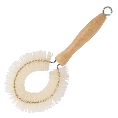 手の届きにくいグラスの底までお手入れできる柄付きブラシです。 グラスの形に合わせて変形させて使えます。 温かみのある天然木の取っ手には、フックに掛けられるように穴があります。 |